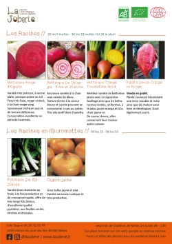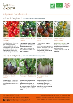 Le catalogue ci-dessous est là a titre informatifs car certaines variétés ne sont plus produites (notemment les légumes feuilles et racines) . N’hésitez pas à me contacter ou même venir sur place.
