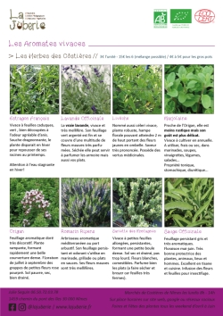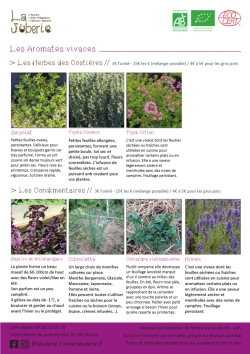 - Je conserve un petit assortiment de plantes aromatiques et médicinales vivaces disponible à partir du 15 avril.