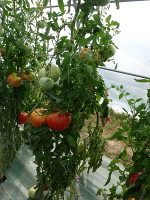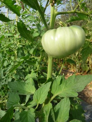 Fruit de type Marmande, car rond aplati et côtelé, mais plus grosse et plus savoureuse.